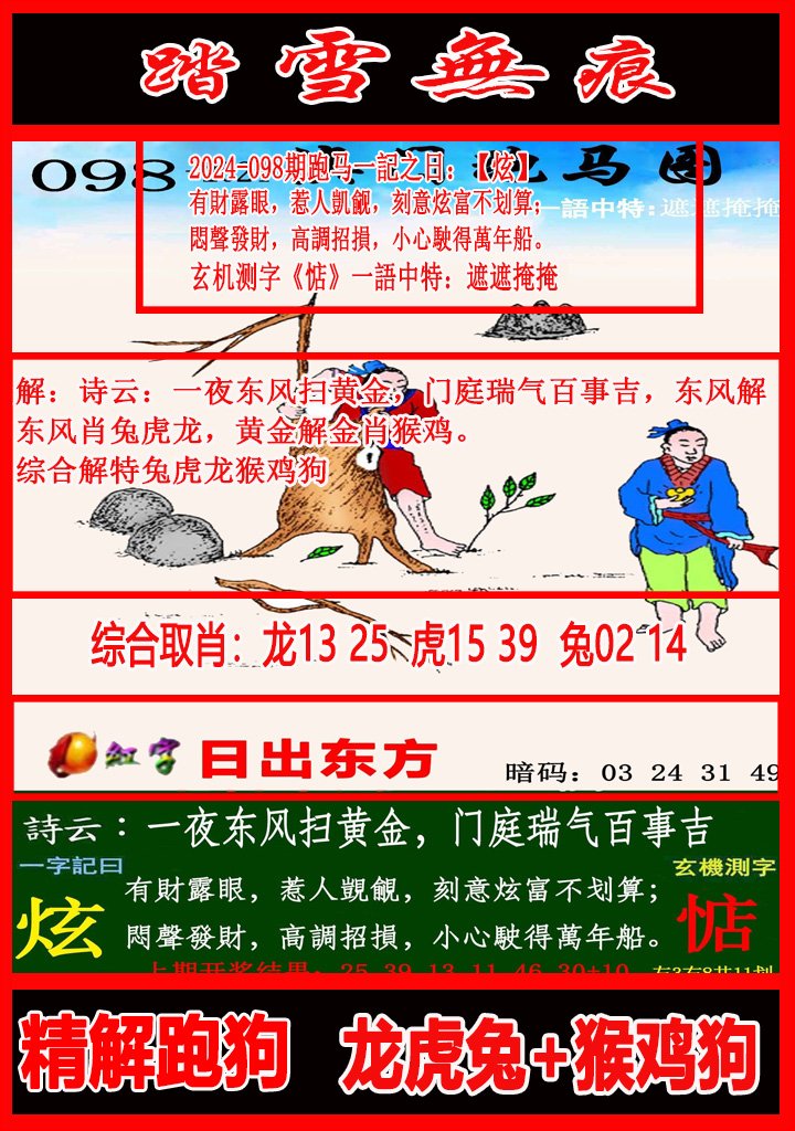 098期: 精准四肖 【狗鼠马虎】 开17虎